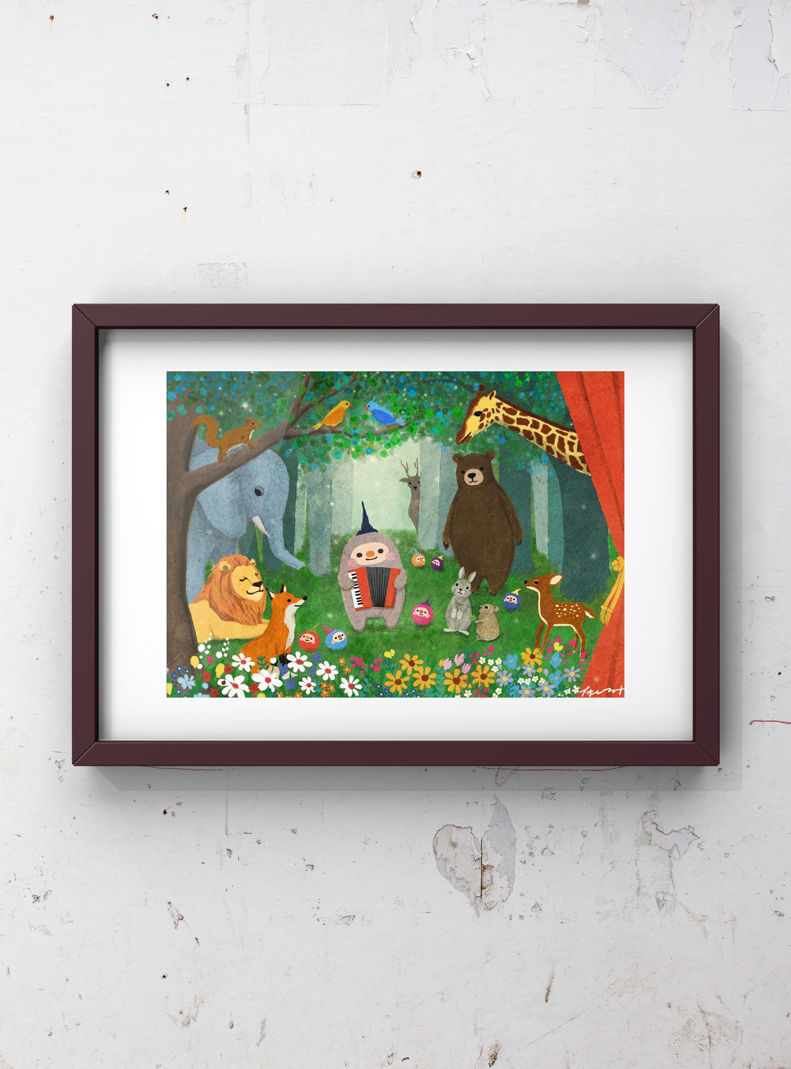 モッタさんの奏でるアコーディオンの音に、森の仲間たちが集まってきます。